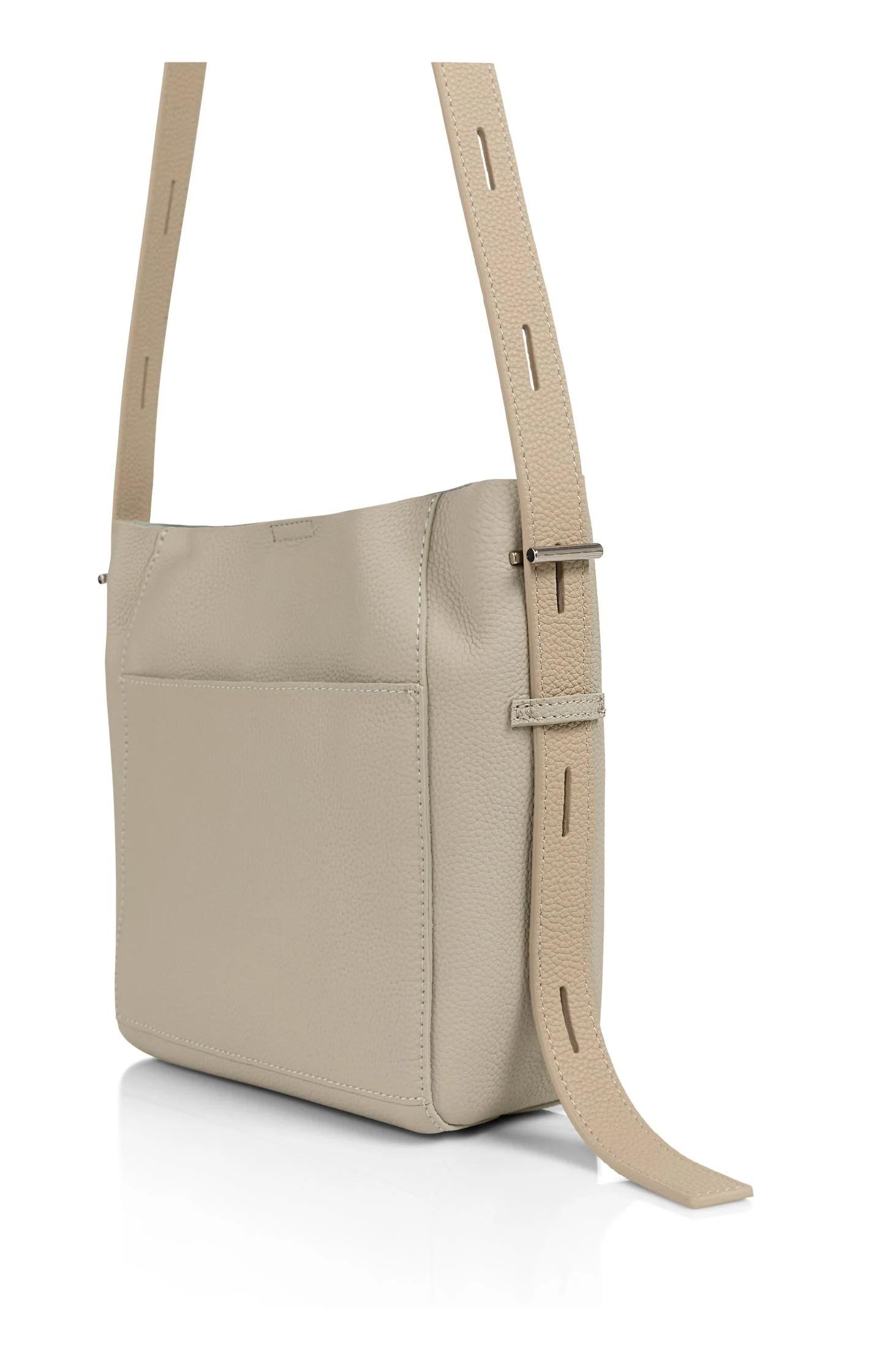This stylish shoulder bag is made of sturdy leather with a fine texture. The design features an adjustable shoulder strap, a spacious outer pocket, and comes with a removable zip pouch. Thanks to its timeless design and practical layout, this bag is perfect for everyday use and on the go. Dimensions: height 38 cm, width 40 cm, base 14 cm, opening 37 cm, shoulder strap adjustable up to 36 cm.