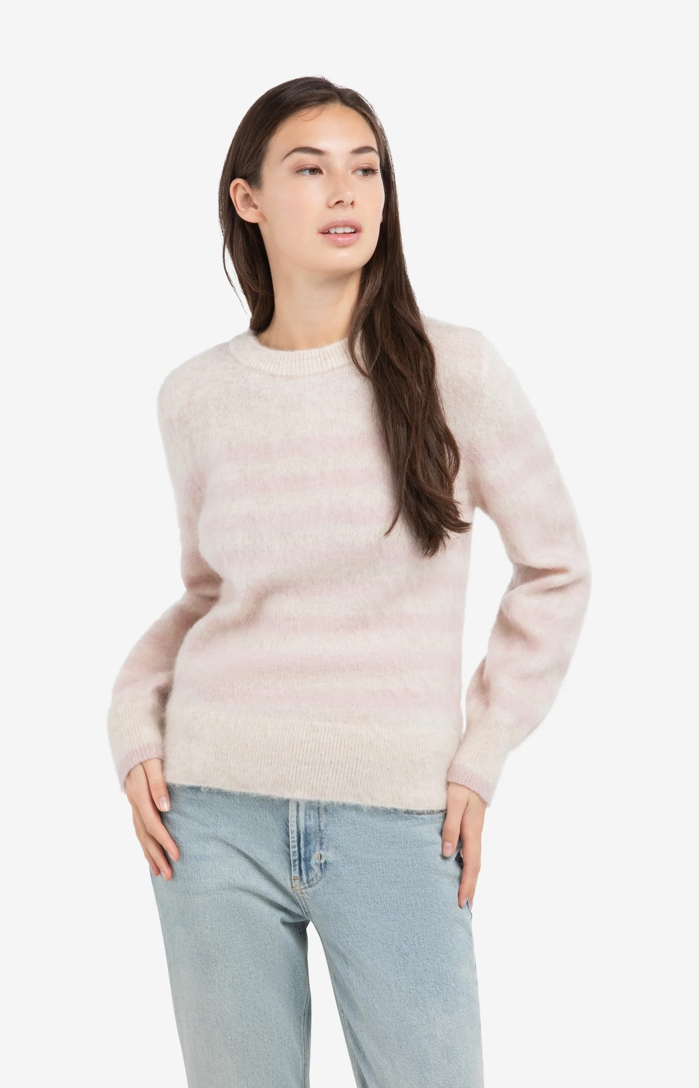 Striped sweater with round neck and long sleeves